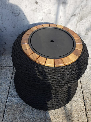 Os móveis não ficam de fora, mas se antes ela ficava no material, agora foi pro design. Pedaços de tronco de árvore viraram mesas pequenas e as mesas de centro foram substituídas por uma placa de madeira maior e bem baixa.